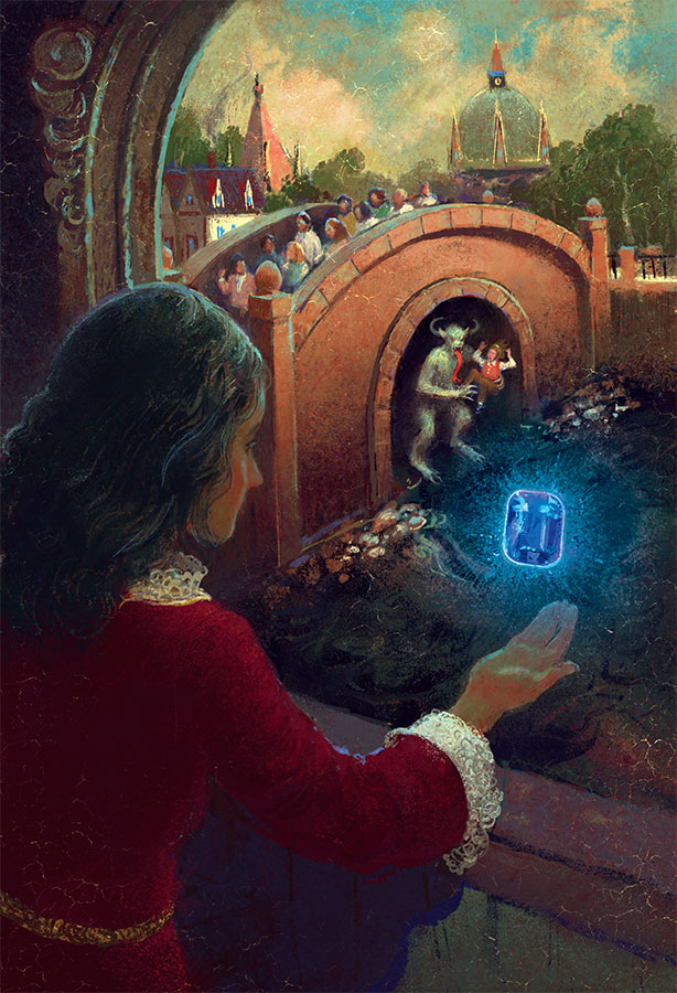 Пролетая по высокой дуге, драгоценный камень поймал луч света и искрился, будто падающая звезда. Демон застыл как зачарованный. Он отбросил свою добычу в сторону и прыгнул за прекрасным сапфиром в канал. Мария кубарем покатилась по каменной мостовой. И, хотя сильно отбила зад и ободрала колено, девочка поспешила в школу с другими ребятами, благодарная за спасение.