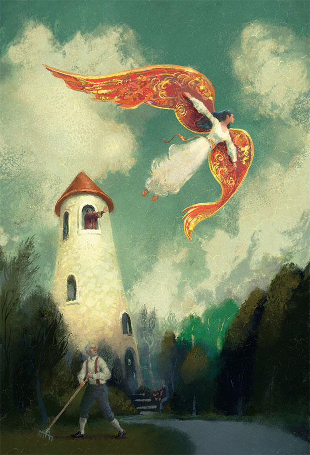 Но за всё время беседы колдун так и не понял, что именно ткала Василька – пару огромных крыльев. Так что ему оставалось лишь смотреть, как девушка накинула их на плечи и выпрыгнула из башни. Она взмыла ввысь, и нити золотых перьев засияли в лучах света, подобно последним всполохам полуденного солнца.