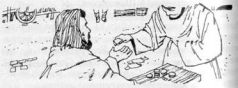 А вот как примерно выглядели древнейшие на земле весы. К небольшому бруску прикрепляли длинную балку при помощи бечевки, продетой в отверстие в середине балки. К каждому концу балки прикрепляли нитями по чаше. Когда чаши пустовали, балка лежала горизонтально: весы находились в состоянии равновесия. Для определения веса любого предмета его клали на одну чащу, а на другую помещали груз, который служил эталоном веса, и поэтому его вес был известен каждому.