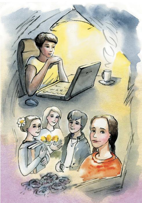 А старшие – совсем другие. Из разных материалов. Но одна девочка тебе как художнику понравилась бы, я уверена. Не скажу, что красавица. Не уродина, нет, но классической красоткой не назовёшь. У них в классе есть гораздо более эффектные девицы. А эта… Высокий лоб, глаза широко расставлены, возможно, даже слишком. И рот – крупный, выразительный. Немного великоват, кажется, но это её не портит. И всё настолько гармонично и тонко сочетается, что даже завораживает. И косы у неё. Косы! Вообще, вся как будто не из нашего времени. Знаешь, я недавно наткнулась на подборку фотографий. Какой-то никому не известный человек снимал в шестидесятых и семидесятых соседей то ли по селу, то ли по небольшому городу. На фоне ковров, заборов, садов, просто натянутой тряпки – для красоты. Там такие лица! Боже мой, такие! Невероятные! Эта девочка будто оттуда. Если же про материал говорить, она снаружи (в переносном смысле, конечно) вроде мягкая, гладкая, как шёлк, а внутри – сталь.