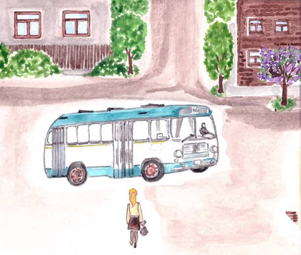 Однажды после школы Ракушка решила немного подъехать на автобусе. Обычно она ходила пешком. Школа была далеко – почти у реки. Две остановки нужно было проехать на автобусе. Потом ещё пару улиц пройти до дома. Как раз у школы и была конечная остановка автобуса.