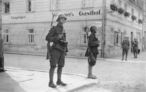 Сопротивление оказывает только один гарнизон, с командиром которого не успело вовремя связаться вышестоящее начальство: в ходе сорокаминутного боя убито и ранено двадцать четыре немецких солдата. На фотографии – чешские солдаты патрулируют немецкий квартал (до известного соглашения)