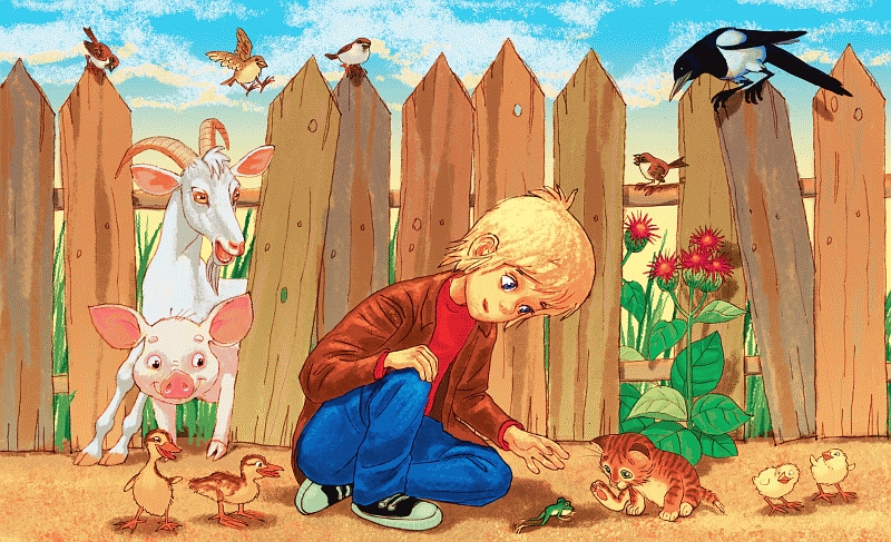 В этом году ему исполнилось семь лет, и он собирался в сентябре пойти в школу. Он уже знал все буквы, но пока не умел складывать их в слова. Поэтому читать он ещё не умел. Вот он и ждал с нетерпением, когда наступит первое сентября. Вернее, он ждал, когда за ним в деревню приедут папа и мама, чтобы отвезти его в город. И он очень беспокоился, что они не согласятся взять с собой Ливерпуля.
