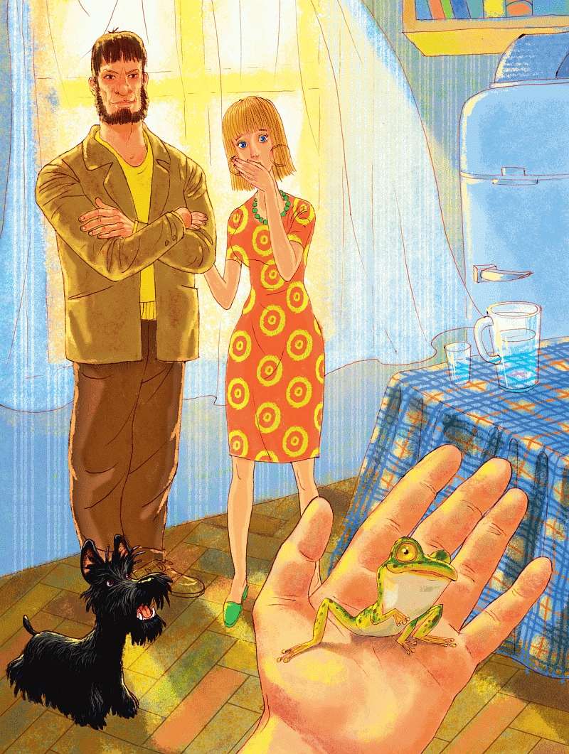 – Ты что, смеёшься? – сказал папа. – Лягушка будет жить у нас в квартире! Ты ещё болото у нас разведи!