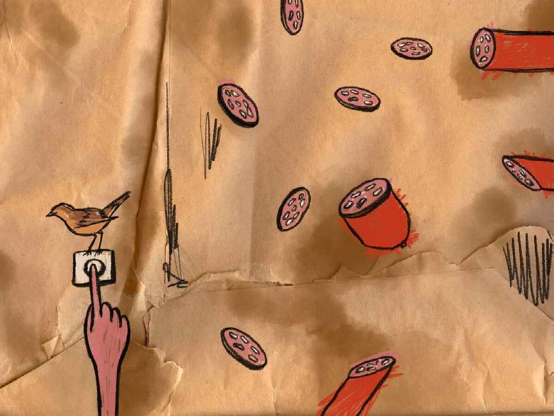 – Два часа, – отвечает ему юноша, который на газете колбасу режет коротким ножиком.