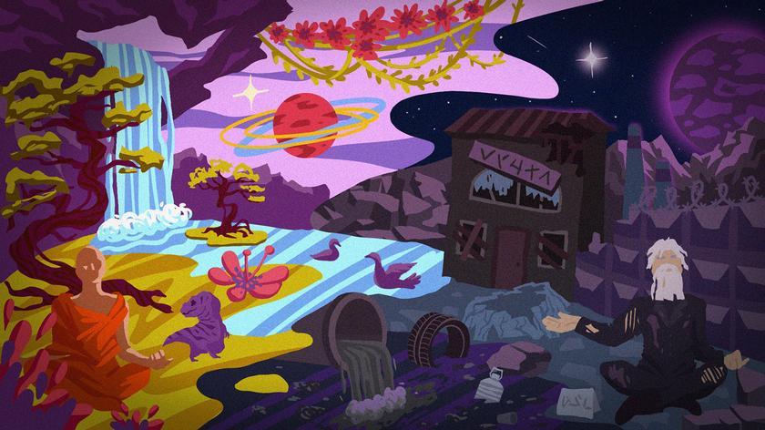 В дни, когда жидкость удавалось купить, настроение у бродяг сильно поднималось уже на стадии предвкушения: они собирались в кружок, разливали в железные кружки напиток, шутили и хрипло смеялись. После выпивали, меняли цвет с синего на зелёный и обратно, закуривали самокрутки с навозом Центромидона – местной модификации земной крысы, – и лица их расплывались в блаженстве.
