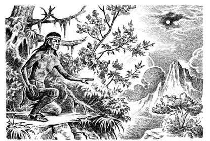 Вождь остановился. Здесь было светлее, оттого что деревья, расступившись, образовали небольшую поляну, освещенную сиянием звезд и мерцанием воды. Маттотаупа велел сыну немного поспать. Харка исполнил его приказ неохотно. Но ему хотелось показать отцу, что он умеет владеть собой в любых условиях. Он свернулся калачиком на мягком мхе и, поеживаясь, уснул.