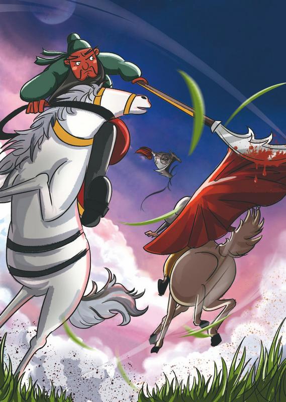 – Ты что это, хочешь ранить моего младшего брата? Вот, получай за это! – Гуань Юй одним ударом отбросил пику Люй Бу.