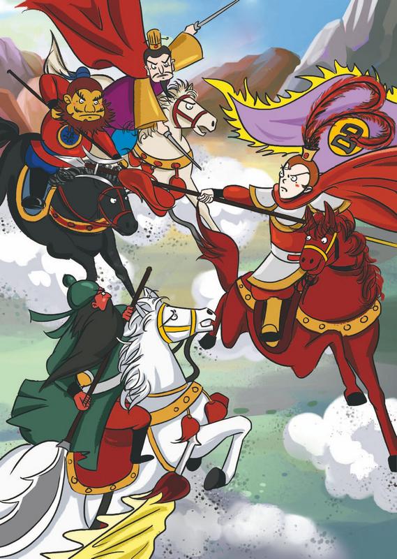 Люй Бу умело орудовал своей огромной тяжелой пикой, как иголкой для вышивания, приемы его были яростными, а каждый удар мог стать смертельным. Сражение Чжан Фэя с Люй Бу продолжалось до темноты, силы были равны; противники провели больше пятидесяти схваток. И тут Чжан Фэй задумался на мгновение: «А этот малый умеет драться, хотя и худой, как щепка! Но зачем понапрасну тратить силы, я больше не могу, все, бой надо заканчивать!» Люй Бу воспользовался паузой и направил свою пику прямо на Чжан Фэя. Сверкающее лезвие почти вонзилось ему в голову, но в этот опасный момент откуда ни возьмись появилась огромная алебарда и преградила путь страшному удару Люй Бу.