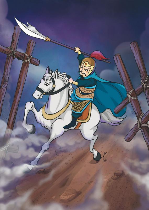 Чжан Фэй на радостях выбежал из палатки, вскочил в седло, и как его ни уговаривал Лю Бэй – все было напрасно: он пришпорил коня и помчался в атаку. Они продолжили схватку: бились при свете факелов до полного истощения и только потом разошлись в стороны.