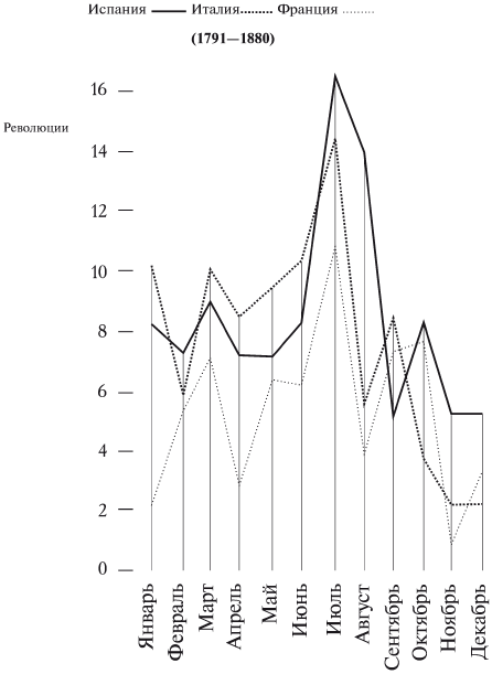 Революции в Испании, Италии и Франции по месяцам (1791–1880)
