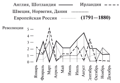 Революции в Англии, Шотландии, Ирландии, Швеции, Норвегии, Дании и в Европейской России по месяцам (1791–1880)