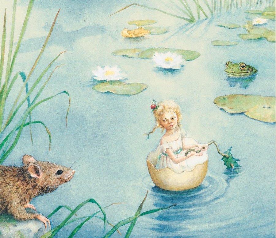 А Фия тем временем смастерила лодку из половинки яичной скорлупки и, ловко орудуя дубовым листком как веслом, доплыла до середины Жабьего пруда.