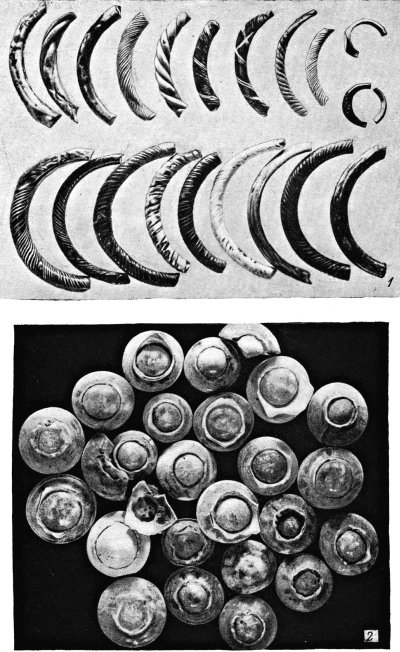 Стеклянные изделия: 1 – браслеты, 2 – донца бокалов. Раскопки в Киеве в 1936–1937 гг.