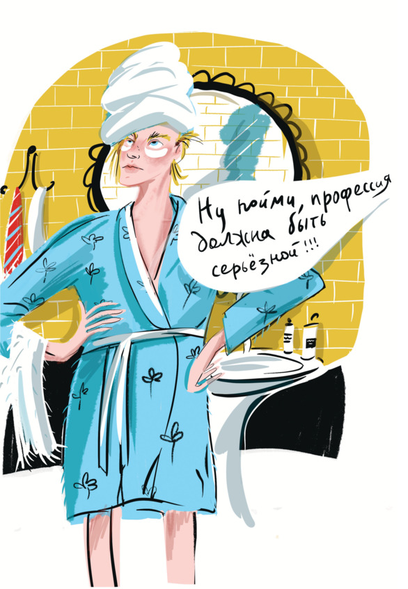 Через два месяца я узнала, что все двенадцать моих креативных и увлеченных сокурсников из «Персоны» не захотели работать по этой профессии. Во время учебы каждый имел свое представление о том, как должно быть. И никто не знал, что есть на самом деле. Вот и я, стоя за гладильной доской студии МУЗ-ТВ, куда совсем юный певец, которого снимали, с вызовом швырял мне вещи, подумала: «Я же студентка иняза, в институте я хотя бы что-то умное делаю!» Выключила утюг и ушла домой. Помню, как поймала такси на последние деньги, – от расстройства подкашивались ноги, и хотелось вычеркнуть этот день из жизни навсегда.