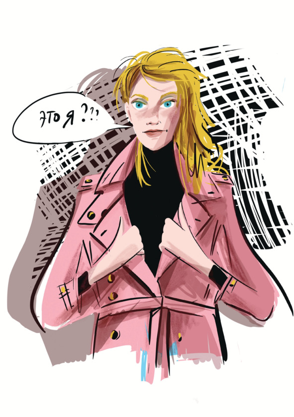 «Давайте сразу снимем обложку Еlle! – предложил он. – Чего впустую снимать?» И все его поддержали. Гораздо позже, уже работая в Elle, я не раз с улыбкой вспоминала, какими же наивными мы были! Амбициозность этой затеи зашкаливала. Мы и понятия не имели, что серьезный журнал никогда не возьмет съемку, сделанную фрилансерами-новичками, да еще и обложку. Но мы ее сняли! Крупный портрет. В кадре – модель с зализанными назад волосами, с высоко поднятым воротником тренчкота Givenchy в тонкую розовую и лавандовую полоску, в огромных розовых, слегка затемненных очках Dior.