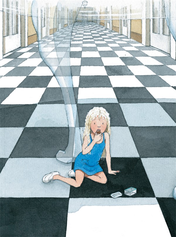 Ну и ну! Она и вправду стала гораздо ниже – наверное, чуть больше полуметра – и с каждой минутой становилась всё меньше и меньше. К счастью, Алиса сообразила, отчего это происходит. Дело, конечно, в веере Кролика, который она держала в руке. Алиса тут же отбросила его в сторону – и как раз вовремя, иначе она исчезла бы без следа.
