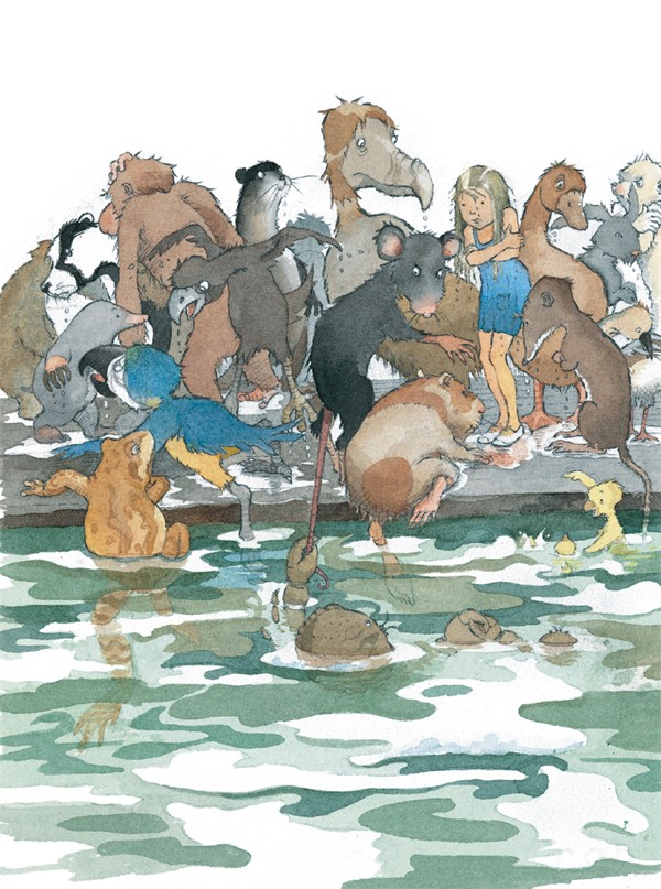 Странное общество собралось на берегу: птицы с перепачканными в грязи перьями, животные со слипшейся шерстью. Все они вымокли так, что с них стекала вода, и вид у всех был мрачный и несчастный.