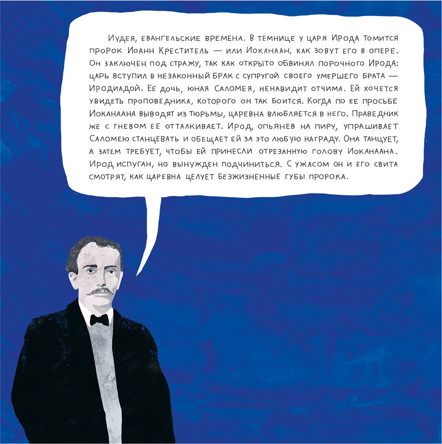 Уайльд заимствовал историю Саломеи из Библии. Однако там иудейская царевна – эпизодический персонаж, у нее нет даже имени. «Во время же празднования дня рождения Ирода дочь Иродиады плясала перед собранием и угодила Ироду, посему он с клятвою обещал ей дать, чего она ни попросит. Она же, по наущению матери своей, сказала: “Дай мне здесь на блюде голову Иоанна Крестителя”», – пишет Евангелист Матфей. Важно, что в его рассказе Саломея просит о кошмарной награде по указке матери: Иродиада ненавидела Иоанна за то, что он прилюдно обличал ее дурной нрав и бесстыдство. В истории Уайльда и Штрауса логика совсем другая: голова нужна самóй Саломее, а вот почему – на этот вопрос должны ответить режиссер спектакля и мы с вами.