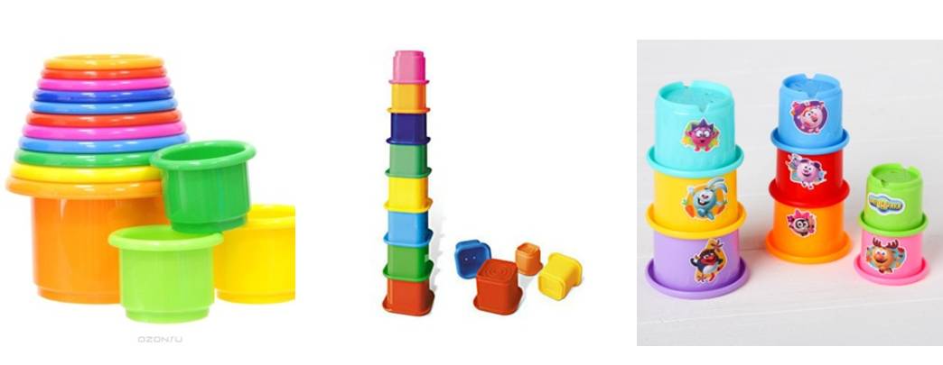 Стаканчики-вкладыши. Мега-игрушка на все времена. Обязательно ее приобретите или сделайте что-то подобное из стаканчиков от йогуртов-творожков и т.п. Малыш будет с большим удовольствием вытаскивать и пытаться складывать стаканчики один в другой, а немного позже начнет вместе с вами строить из них башенки.