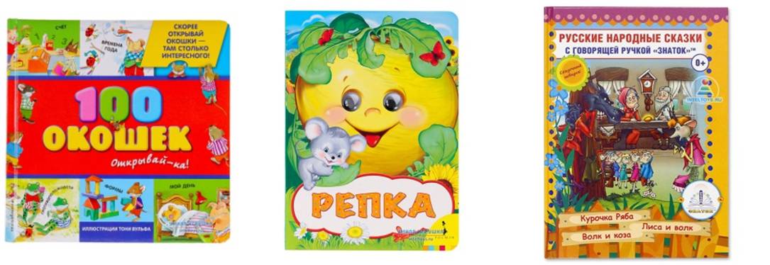 Книжка. С самого раннего детства необходимы книги, конечно, специальные, прочные, с крупными картинками из очень плотного картона, пластика. Сначала книжкой ребенок играет, хватая страницы и крутя во все стороны. К 10-12 месяцам интересуется картинками, которые мы показываем, узнает знакомые предметы мебели, игрушки, животных, показывает их по просьбе взрослого.