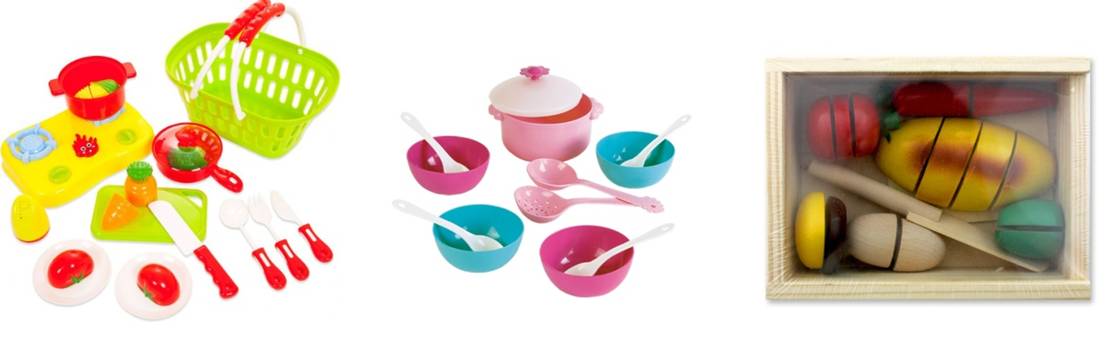 Одно из главных желаний ребенка – быть похожим на своих родителей. Именно поэтому готовить в этом возрасте любят все: и мальчики, и девочки. Смело приобретайте для малыша детскую кухню или посуду: и приготовьтесь каждый день кушать суп, кашу или пюре от «маленького шефа». Малыши этого возраста активно овладевает действиями с бытовыми предметами и учится обращаться с ними, копируя поведение взрослых. Такими предметами являются самые обычные вещи – ложки, чашки, расчески, щеточки, карандаши и пр. Все они требуют совершенно определенных действий, которые нелегко даются малышу. Но есть специальные игрушки, которые помогают развивать умение обращаться с такими предметами. Играя с ними, малыш тренирует не только руки, но и все психические процессы: внимание, память, речь, мышление. К таким игрушкам относятся: совочки и лопаточки для копания, ложечки и тарелочки для кормления кукол, молоточки и колышки для забивания, удочки с магнитом для ловли рыбок, сачки для вылавливания игрушек.