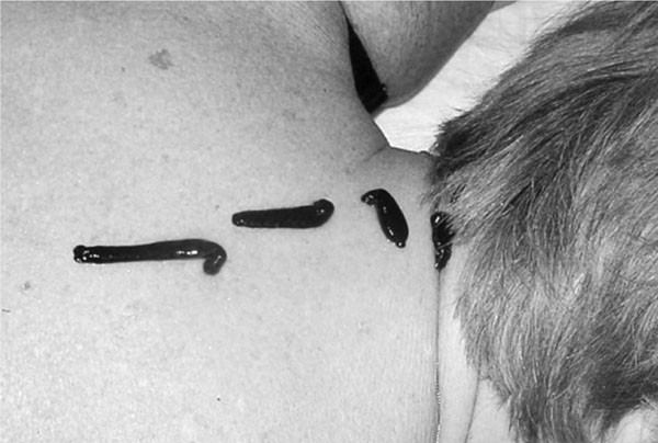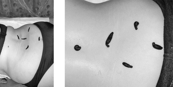 Постановка пиявок пациенту – шейный отдел позвоночника