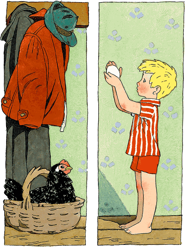 Ваня подумал и достал из-под клушки яйцо. Клушка клюнула его в руку, но не очень больно.