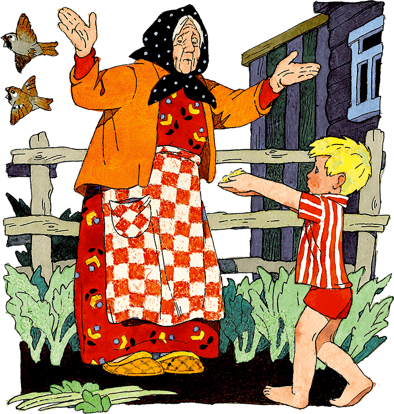 Но после обеда и Ваня забыл свои слёзы и бабушка повеселела: у клушки начали выводиться цыплята.