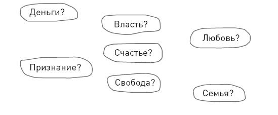 Часто люди приходят с вопросом: а что, если цели нет совсем? Откуда ее брать? Цели формируются из ценностей. Посмотрите на ценности ниже. Они специально так расположены – в форме управляемого хаоса, чтобы вы все равно увидели здесь гармонию.