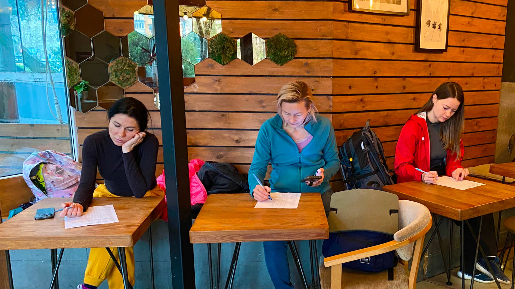 Участники программы лесных купаний заполняют профиль настроений POMS2 прежде чем отправиться на лесную прогулку, фото автора