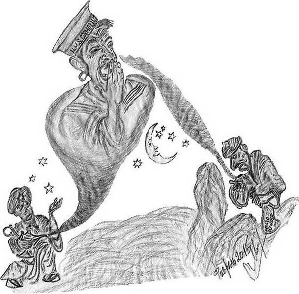 – Что происходит? Почему он чихает? Я же правильно прочитал заклинание! – вскричал удивлённый Аль-Фарух. – А, не нравится тебе! Вот я тебя сейчас ещё угощу! Будешь знать, негодник, как коз да овец красть и добрых жителей пустыни пугать! – ликовал Аль-Мажнун, насыпая на ладонь еще порошка.