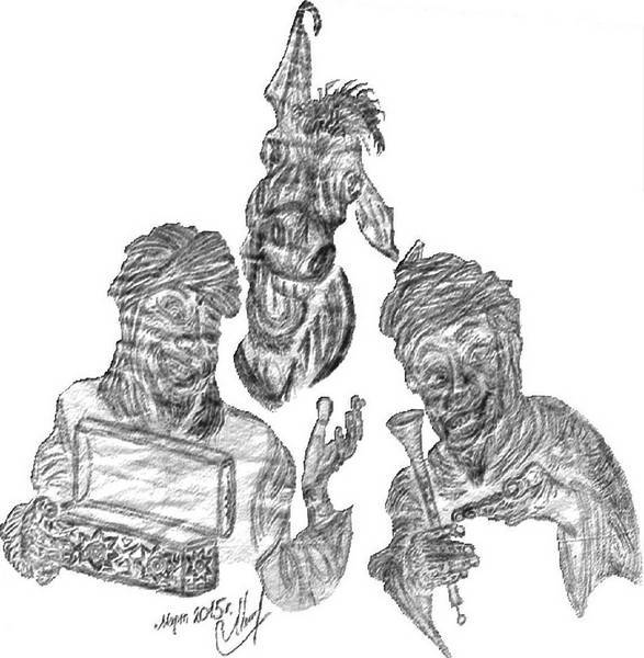 – Вспомнил! Сперва дудочка! – воскликнул Аль-Мажнун и достал из сумки волшебные предметы. Сев поудобнее, он дунул в дудку что есть силы, наугад зажимая пальцами отверстия.