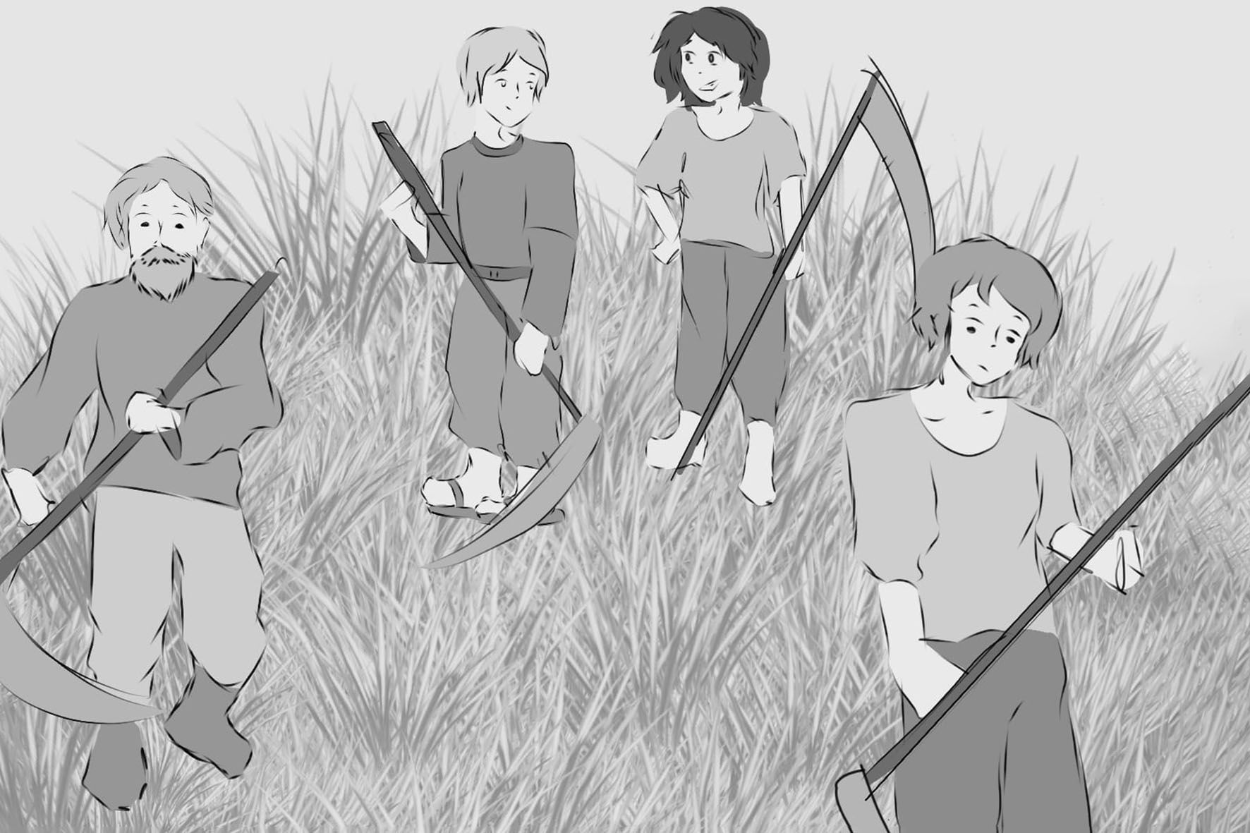 Пересилив себя, умылся и быстро перекусив, пошел во двор. Отец и два старших брата уже были готовы. Каждый брал с собой косу и сумку.