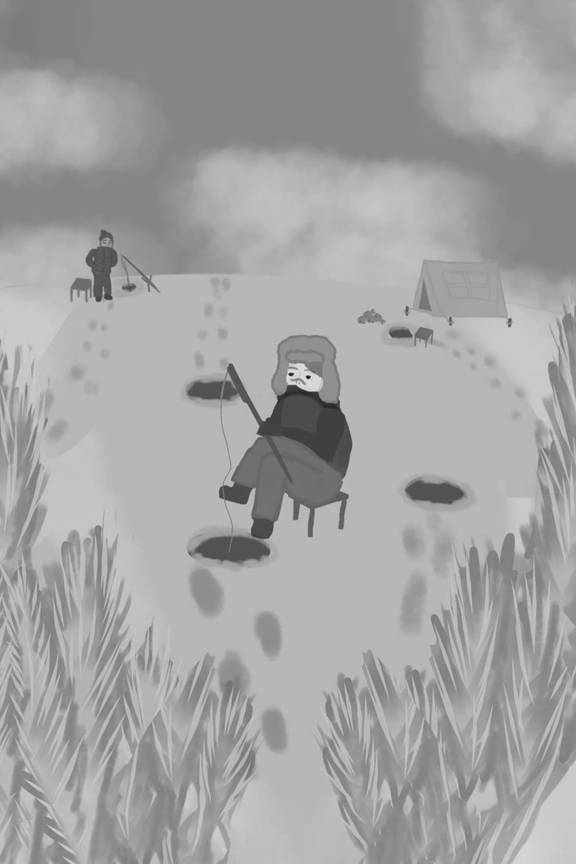 В метрах 20 расположилась тонкая доска, по ней рыбаки переходили на лёд для ловли рыбы. Мы отправились покорять воображаемый трап пиратского корабля. Все прошло хорошо. Дойдя до середины озера, начали осматривать лунки, пробуренные рыбаками. Пошел снег большими хлопьями. Ветер утих и стало тепло. Девчата повизгивали, когда под ногами хрустел и ломался небольшой слой льда. Так происходит, когда погода часто меняется с теплой на морозную и обратно. Я знал, как вести себя на льду. Рассказывали старшие ребята, да и родители тоже. Хорошо запомнил, как вытаскивали одного рыбака, провалившегося под лёд в прошлом году. Вся одежда была мокрая. Передвигался смешно как робот. Его отвели в ближайший дом обогреваться. Кто-то из товарищей нес его вещи. Всем было явно не до рыбы.