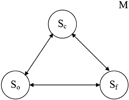 * Итак, в общем, случае, в соответствии с некоторой целью F (или системой ценностей или системой целей разрешения определенной проблемы) среда М выделяет некоторый объект для изготовления изделия (продукта), т.е. результат деятельности объекта, обеспечивающий достижение цели. Для формирования, управления функционированием и для управления развитием объекта среда выделяет некоторый субъект деятельности, ответственный за соответствие функционирования объекта и за соответствие результата поставленной цели. Среда, теперь уже внешняя по отношению к триаде «объект-субъект-результат», представляет себе эту триаду на основе одной модели общей системы по той причине, что, в конечном счете, у всех трех компонент триады имеется общий системообразующий фактор – некоторая цель, в соответствии с которой среда М вычленяет эту триаду. Эту триаду, если она осуществляет системную деятельность, можно назвать системной триадой, триадой систем, так как в этом случае и объект, и субъект, и результат должны быть представлены моделями систем. Вначале среда М выступает в виде субъекта деятельности, поэтому сама среда, а также объект и результат будут описываться на основе некоторой модели общей системы. Затем система-субъект становится «представителем» внешней среды и, далее, возникает необходимость в общей модели триады «объект-субъект-результат» (рис. 1.2).
