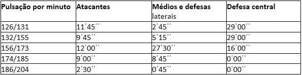 Durante todo tempo duma partida foram relevadas as seguintes frequências de pulsação: