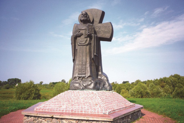 «Кирилл Туровский (около 1113- после 1190 гг.) – белорусский и восточнославянский религиозный деятель, богослов, писатель. В 1123 году принял постриг. С 1161 года – туровский епископ. Кирилл Туровский активно занимался проповеднической, политической и литературной деятельностью. Прославился как мастер ораторской прозы. Автор проповедей, молитв, поучений, притч, канонов (сохранилось около 70 произведений)». Источник: https://ru.belarus.travel/landmarks/pamiatnik-kirille-turovskomu