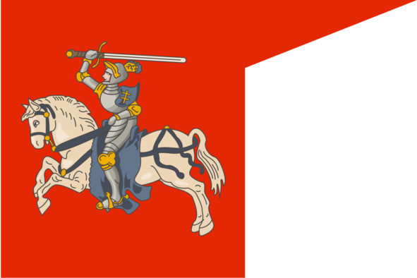 Королевское воинское знамя Великого княжества Литовского с двойным крестом династии Ягеллонов на щите всадника.