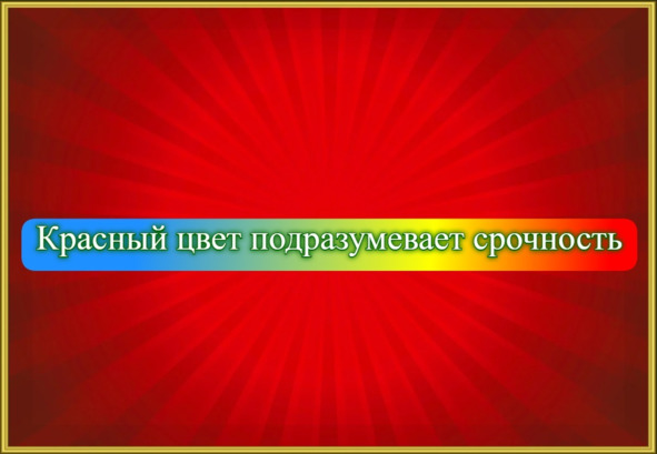 Цвет – еще один инструмент в нашем арсенале, подразумевающий необходимость быть внимательным и действовать быстро. В большинстве западных стран людей с раннего возраста приучают верить, что Красный цвет подразумевает срочность.