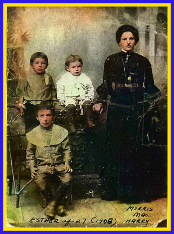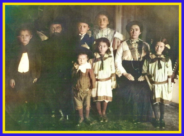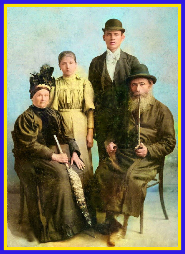 Еврейская семья. Житомир. 1905. «Во время Пасхи 1905 начались волнения в городе с поощрения властей. Еврейская молодежь, сионистские и социалистические организации организовали самооборону и сражались с мятежниками. Около 15 правозащитников были убиты, среди них русский студент Н. Блинов. Кроме того, десять молодых евреев из местечка Чуднов, хотели помочь евреям в Житомире и были убиты по пути в Житомир. Иосиф и Эстер Freedland смогли предвидеть, что будущего у них здесь не будет. Они иммигрировали в Соединенные Штаты до начала еврейских погромов». Источник: https://www.etoretro.ru/pic11089.htm