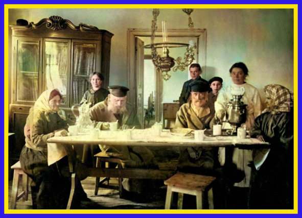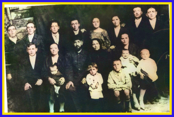 Семья Боруха Гельфанда. Червень, 1924 г. (Беларусь). «Фотография сделана в 1924-м году в городе, который, к этому времени, уже несколько месяцев как сменил свое пятивековое имя Игумен, раздражавшее новую власть, на Червень, которое носит и поныне. На фотографии многодетная еврейская семья в полном составе и при полном параде. Фотография постановочная, как было принято в то время. К сожалению, неизвестно, какой фотограф ее сделал, но выбор в то время был невелик. Либо фотомастерская Н. А. Фридлянда, либо Лазаря Рытова, все известные игуменские фотографии, с начала века и до Великой Отечественной войны, сделаны там, что подтверждают имеющиеся на обороте штампы. Сделана фотография на улице, на фоне бревенчатой стены, которую прикрыли большим холстом с изображением добротного дома, стоящего на берегу озера в окружении высоких деревьев. Правда, семья настолько большая, что с обеих сторон холста выступают бревна. Для пущей важности с правой стороны добавлен небольшой круглый столик, прикрытый кружевной скатертью. Фотография была сделана не просто для того, чтобы запечатлеть семью в определенный период ее жизни. Этот снимок собирались отослать американским родственникам, поэтому и фотограф, и снимающиеся очень хотели, чтобы все выглядело прилично. В центре фотографии сидит глава семьи, и в то время, по сути, единственный кормилец, кузнец Борух Гельфанд. Он происходил из семьи потомственных еврейских кузнецов, издавна проживающих на Игуменщине. С детства помогал в кузне отцу-кузнецу. В семье его отца было 17 братьев. Некоторые умерли в младенчестве, несколько братьев иммигрировали в Америку в начале века, некоторые погибли в Первую Мировую, но те, что остались в Белоруссии и на Украине, стали кузнецами. Фотографию у местного фотографа сделали специально, чтобы выслать в Нью-Йорк, одному из братьев Боруха, который накануне прислал из Америки снимок своей семьи». Ирина Вабищевич. Источник: http://shtetle.com/shtetls_minsk/cherven/history_photo.html?