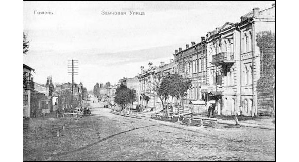 «Я свернул на Речицкую и прошел ее на всем протяжении до железной дороги. Речицкая улица тихая, хотя весьма густо населенная… Кое-где плетутся коровы, с трудом освобождая ноги из густой засасывающей грязи. Кое-где в громадном болоте, разлившемся поперек улицы, полощутся босые ребята, да еще у ближайшей лужицы смывает грязь старая женщина в громадных мужских сапогах. В деревянных, на авось построенных домах, как видно, весьма тесно… Тротуаров нет… скромный оазис торгово-промышленной жизни на Речицкой улице – маленькая, чуть заметная лавочка, где, вероятно, можно достать все, от дегтя до сельтерской воды, кваса „фиалки“ и монпасье».