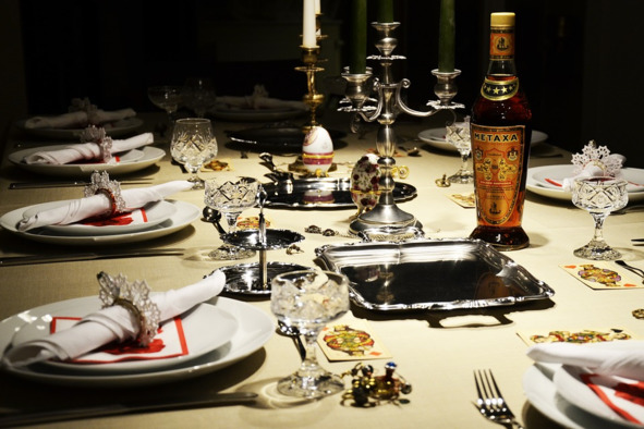 Можно при необходимости, поставить небольшие по размерам тарелки, чтобы класть на них оливковые косточки, использованные коктейльные трубочки.