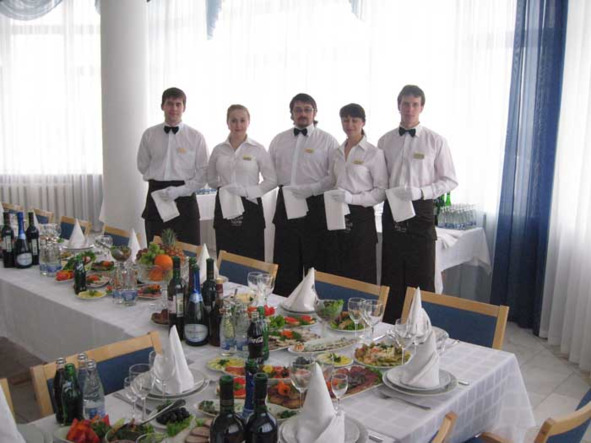 Определение числа официантов происходит из расчета – один официант на восемнадцать – двадцать гостей. Если фуршет длится примерно два часа, официанты могут заниматься его четырех – пятиразовым обслуживанием.
