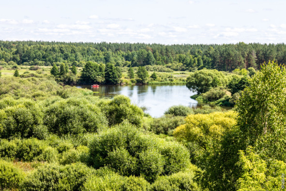 «Место слияния Свислочи и Березины. Свислочь – справа снизу, а Березина – где на лодке плывут)». Источник: https://strada.by/story/razvaliny-v-poselke-svisloc