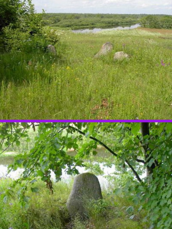 «Кладбище находится в километре к СЗ от агрогородка Свислочь на крутом берегу над излучиной реки Березина. Чтобы добраться до него, следует проехать около 500 м в направлении города Березино, за знаком «Прогон скота» повернуть вправо на скотопрогонную дорогу, оставляя проволочную изгородь слева, доехать до засеваемого поля-пастбища, пересечь его по рыбацкой проселочной дороге в направлении огромного светлого валуна на опушке (А) все буквенные обозначения – на карте Svis_2018a.jpg)