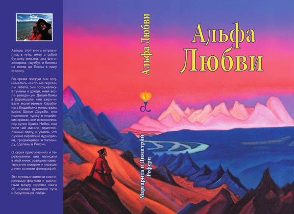 На оригинальной обложке «Альфы Любви» мы использовали картину «Песнь о Шамбале» Николая Рериха (его внутрисемейное тайное имя – Фуяма). До нашего путешествия мы немного знали о Рерихах и стали ближе с ними знакомиться, оказавшись в рериховском поместье в индийском Наггаре. Со временем выяснилось, что наш вояж по Азии вступил в заочную перекличку с Центрально-Азиатской рериховской экспедицией, описанной в дневниках и книгах её участниками.