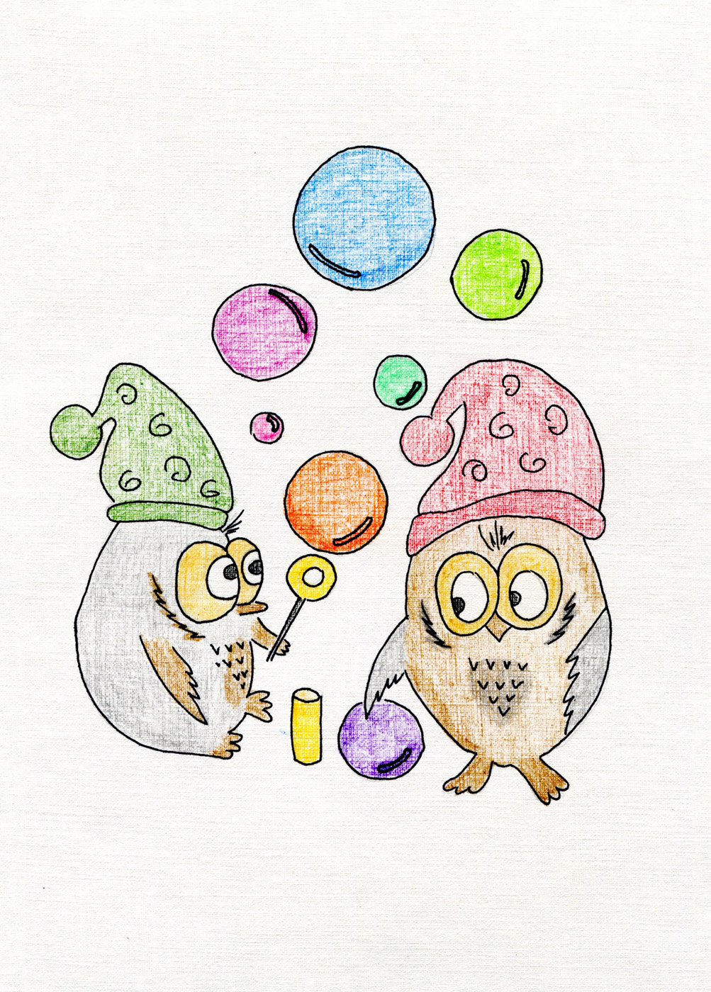 Как-то раз они пришли на солнечную поляну, достали желтую баночку и по очереди начали надувать прозрачные шарики. А ведь это очень увлекательная игра – лопать пузыри крыльями или клювом. И вот наступила очередь Дики. Он надул такой большой мыльный пузырь, что сам в него попал, а когда Рики хотел его спасти, но тоже оказался внутри.