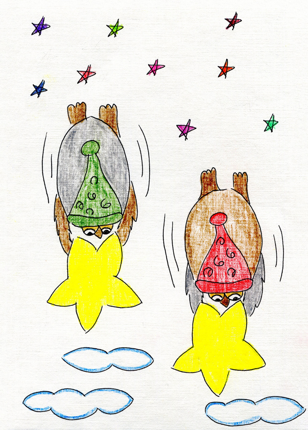 Когда начался звездопад, Рики и Дики на звёздочках отправились домой.